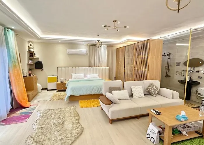 El Luxury Roof Suite El El Cairo está situado en el distrito Nuevo Cairo, a 3 km del Gravity Code, muy recomendable para visitar en familia. El apartamento cuenta con una terraza que da a la ciudad.